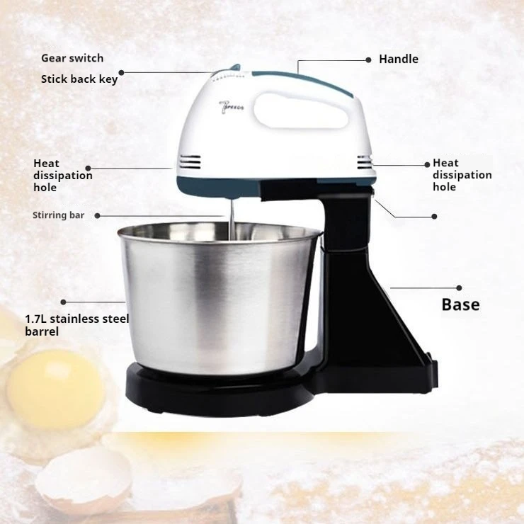 Small Desktop Electric Whisk and Flour Cream Mixing Baking Tools with Dough Hook and Mixing Bowl Handheld Accessories
